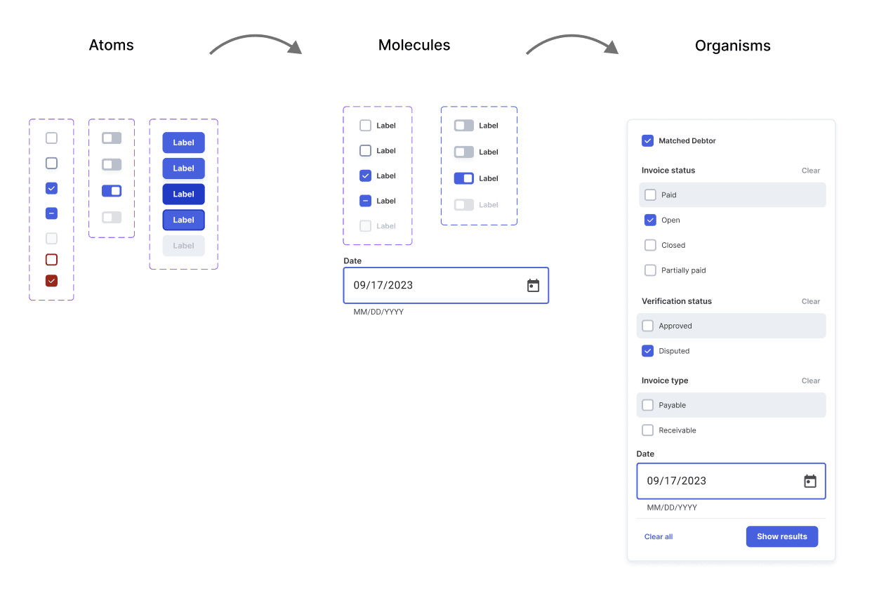 Developing existing molecules to more sophisticated composite components. These enhancements enabled modularity and reusability across the design system, significantly reducing redundancy and development time.