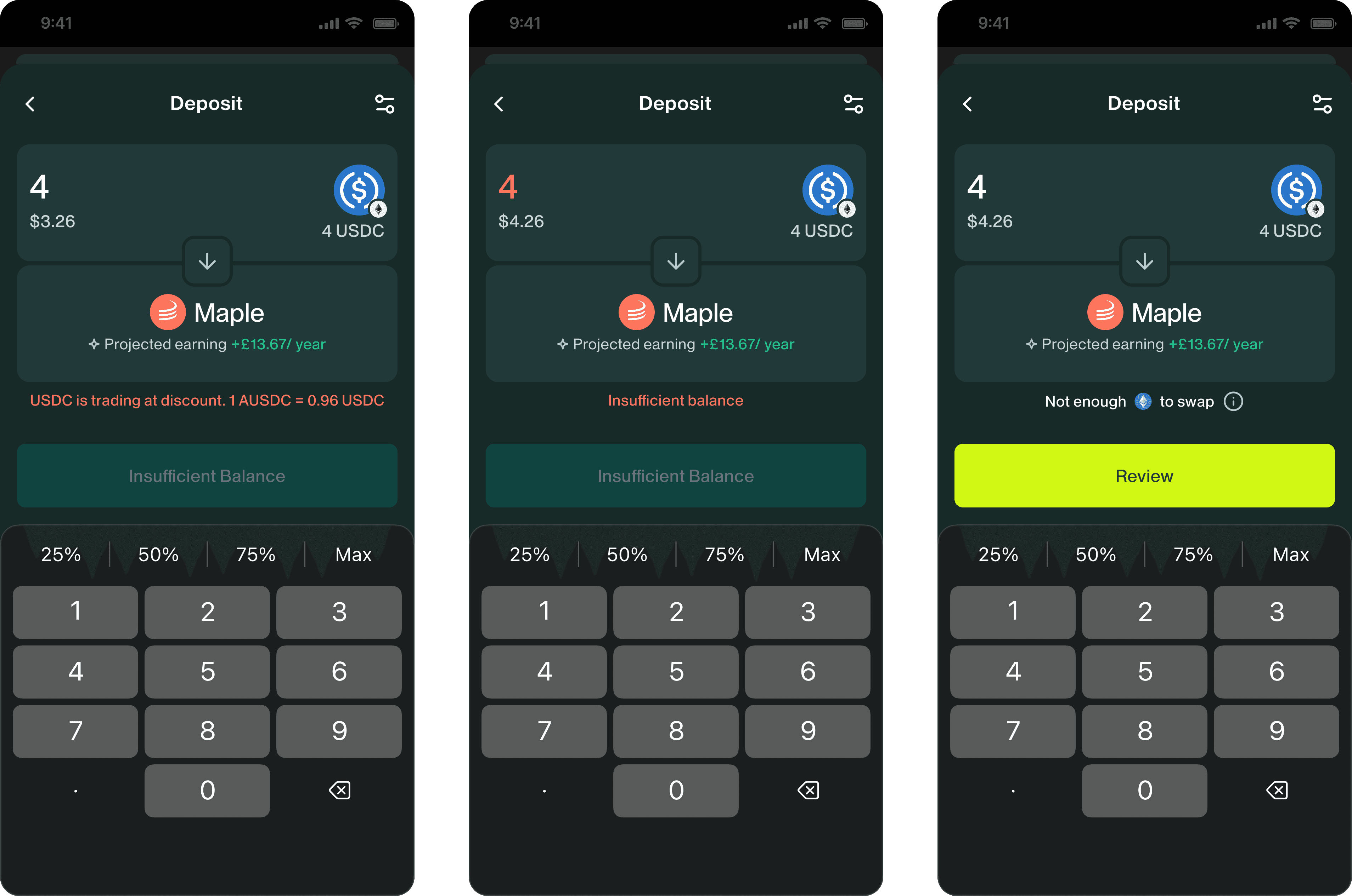 During market stress, AUSDC can trade below 1:1 with USDC (saw 0.93 during Terra collapse).