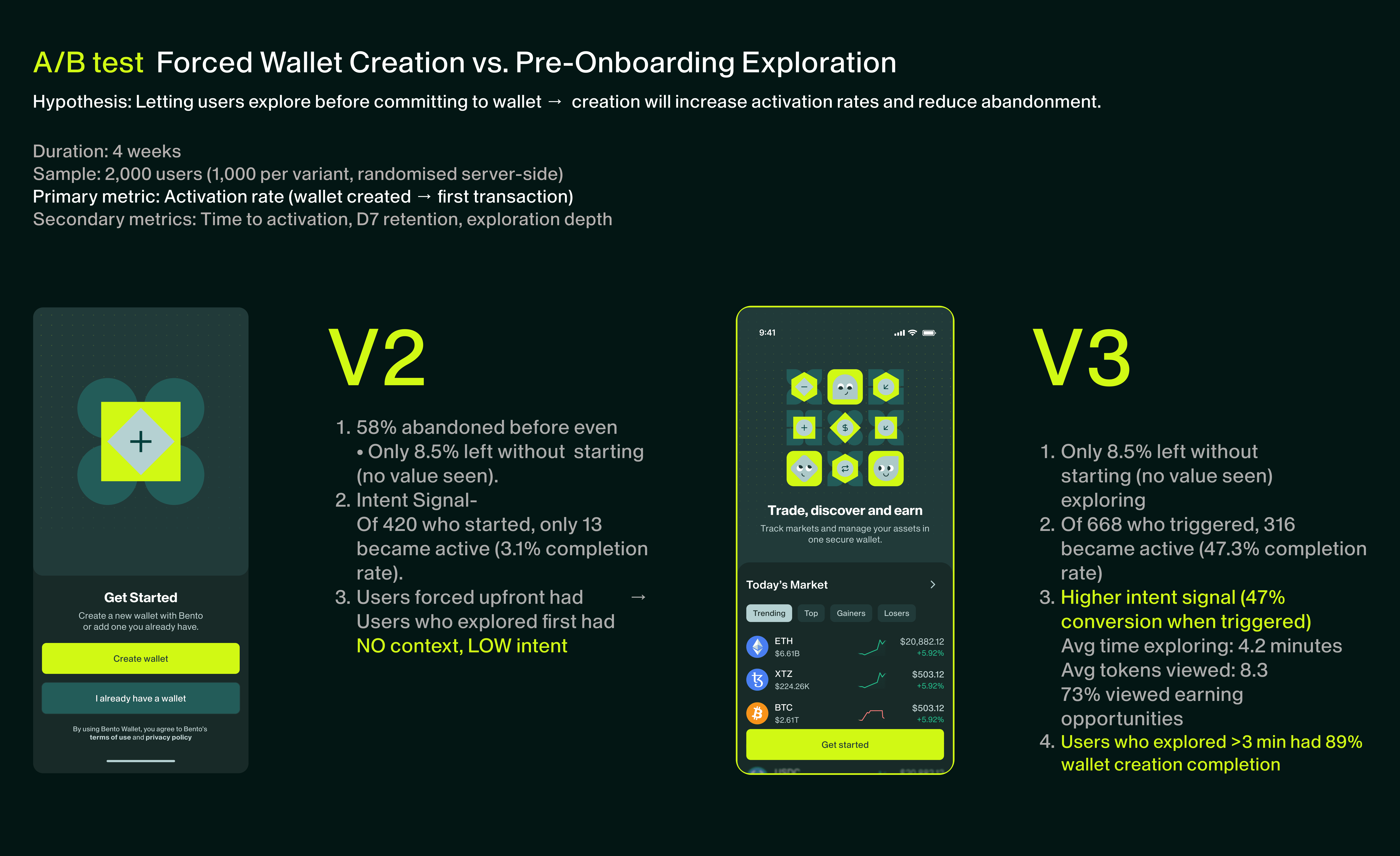 Reduced time-to-first-earn from industry standard 12 steps to 3, driving 3-5× retention lift.